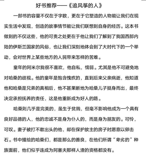 卢欣瑶推荐《追风筝的人》