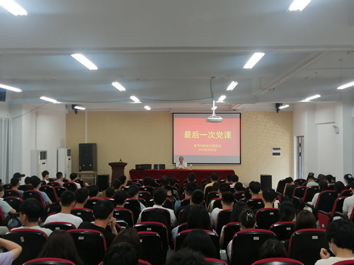 一堂党课守初心。为教育引导毕业生党员不忘初心,继续努力成长成才,6月9日下午,电气与信息工程学院在励行楼B112报告厅举行毕业生党员“最后一次党课”。校关工委胡光厚老师以《坚持中国共产党领导,坚定信心一起向未来》为主题给2022届全体毕业生党员讲了一堂精彩的党课。课后,全体党员共同重温入党誓词,激发了全体党员的使命感和责任感,使全体党员牢记共产党员的初心使命,强化党性观念,把爱国情、强国志、报国行融入到毕业后的人生征途,用奋斗书写人生华章。