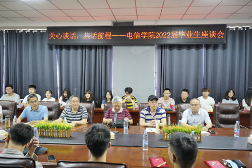 一次座谈忆往昔。6月4日下午,学院关工委王清灵、胡光厚、杨斌三位老领导、学院党委书记徐关怀,党委副书记、院长周孟然,学院学工负责同志,毕业班辅导员同2022届30多名毕业生代表于B407报告厅欢聚一堂。围绕“关心谈话 共话前程”为主题,畅谈四年来的收获。座谈会上毕业生代表积极发言,畅谈自己对大学生涯的感悟,表达自己对学校和学院的热爱之心与感激之情。同学们提出了对即将开启的工作模式和研究生学习生活所面临的困惑和迷茫,三位老师都给予了耐心的指导。