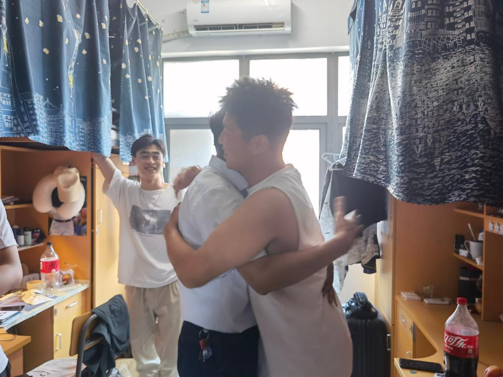 6月15日下午,学院党委书记夏邦权一行前往毕业班宿舍为他们送行。夏邦权恭喜他们顺利完成了大学学业,即将奔赴下一段旅程,感谢他们一直以来对学校、学院工作的理解和支持,一个拥抱,亦师亦父,深情流露。他叮嘱毕业生们归途做好个人防护,注意财产和人身安全,到达目的地报个平安。他寄语毕业生在未来的岗位上继续保持材料学子严谨细致、真抓实干的学习态度,不断提升真本领,练就强健的体魄,保持良好的心态,也欢迎大家常回来看看。
