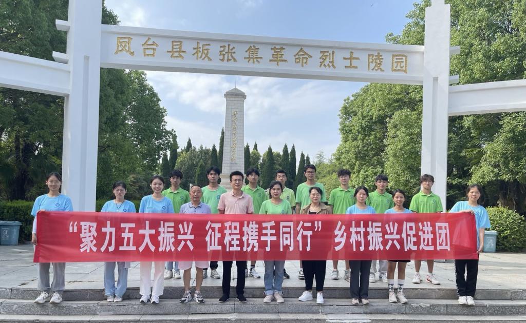 6月22日上午,促进团赴凤台县丁集镇板张集烈士陵园,开展了入团宣誓、参观纪念馆、清理落叶等集体活动。通过守园人的介绍和资料的展示,实践团成员对于淮海战役、解放战争等有了更加深入的了解,同时感受到了党建引领的作用,组织振兴是乡村振兴的关键力量。