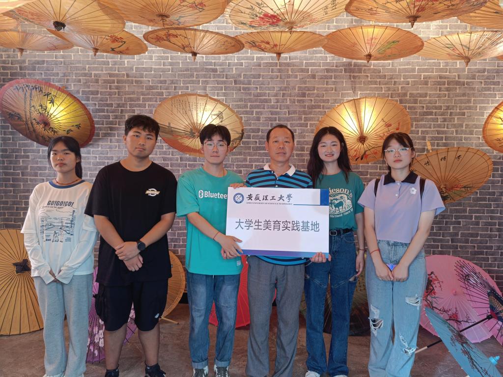 下午4点半,团队成员在的指导下亲自参与了制作油布伞,队员们自己动手实践,动作显得笨拙生疏但是个个都认认真真完成基本的步骤。团队成员通过亲身体验,了解到了非遗的魅力所在,对保护非遗也有更加深刻的认识。制作结束后,队员们与郑国民先生一起为安徽理工大学大学生美育实践基地挂牌。