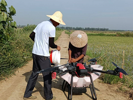 同时,另一队小组成员深入六安市霍邱县的田间地头,了解无人机在田地施肥方面的工作流程,探讨科技对乡村经济振兴所起的巨大作用。村民现场示范无人机施肥在种植过程中的应用,并说到:“在这里一个人要管理很大一片地,以前的人工施肥费时又费力,一天下来都不够整块田的五分之一,现在有无人机施肥,不需要太大的人力成本,半天就可以施完整块地”。
