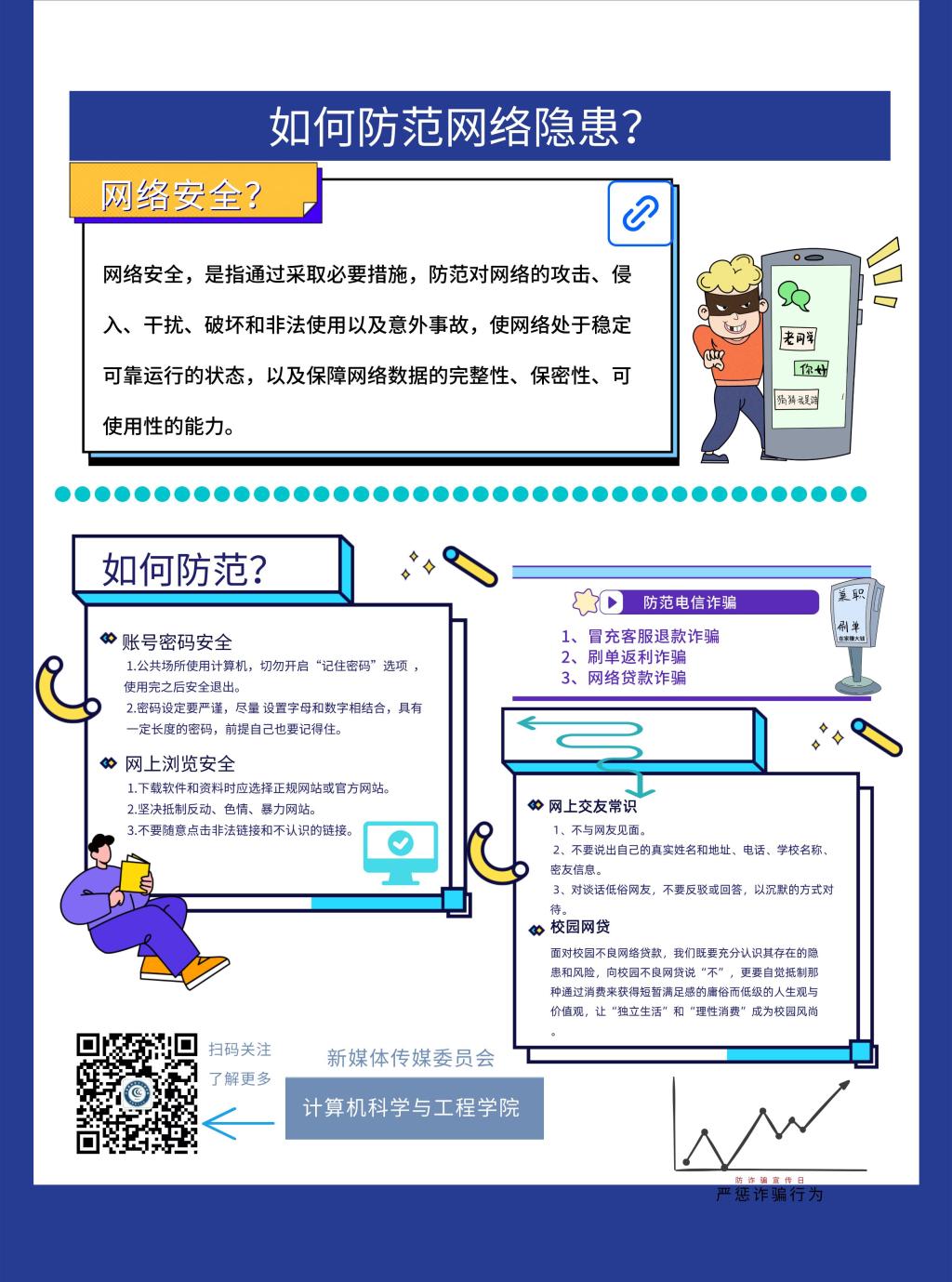 互联网不是“法外之地”,“一切被记录”的大数据时代已经来临,我们应自觉遵守国家有关互联网的法律、法规和政策,坚持依法上网,文明上网。据悉,学院还通过计科助手、微信群向师生发放网络安全宣传电子海报,普及网络安全知识,通过多渠道宣传网络诈骗犯罪、网络安全防范等方面知识,起到了良好的安全堡垒作用。