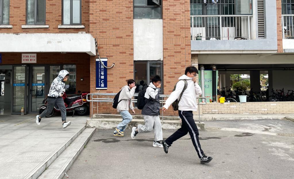 消防警铃响起,彭广峰引导同学们分批次、排好队从宿舍楼有序撤离至安全区域,整个演练过程规范有序,撤离有条不紊。