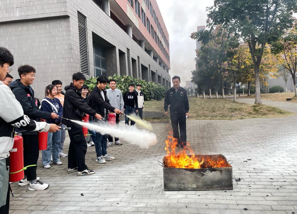 会后,彭广峰就消防器材的使用方法对师生们进行了培训,师生们现场参与消防器材灭火操作演练。师生通过学习安全知识与技能,提升防范意识,共筑校园安全“防火墙”。