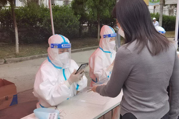 曹冬黎老师所在的小区在田家庵区洞山街道,社区一直是防范区,随着疫情的好转,很多地方开始复工复产,社区需要更多的志愿者参与疫情防控和核酸检测工作,她也终于如愿以偿,社区同意她参加核酸检测采样和登记工作。