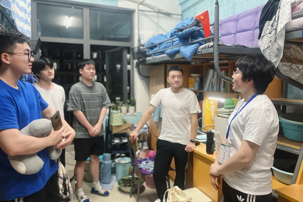 学校全面启动线上教学以来,领导班子根据学生分布情况包片区、包楼层、包年级,和辅导员一起开展每日“扫楼”行动,查课查寝同步走。辅导员一方面化身为“网课质量监督员”查看学生上课情况,一方面变成呵护学生健康的守护者。他们每日奔走学生宿舍不停歇,走不动了,就趁和学生聊天的机会歇一歇,然后继续下一个宿舍。“学生还有几分钟就下课了,我们就在门口等一会再进宿舍吧。”已经晚上11点了,他们就拿起手机开始“云”查寝。“办公室——学生宿舍”两点一线是辅导员的生活常态,日行2万步丈量的是辅导员对学生的情感。项华阳说:“每天必须见到他们,他们在宿舍认真上课、看书,或者在食堂打饭、超市买零食,或者在操场打篮球、规定路线打卡“宥马运动”,甚至在宿舍打电脑游戏、追网剧,每天看见他们健康快乐的生活学习,我就感觉很踏实。”