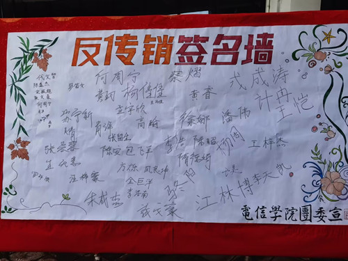 为进一步提高大学生防范传销意识,防止传销组织向学校渗透蔓延,11月20日至29日,电气与信息工程学院开展以“拒绝传销,净化校园”为主题的系列教育活动。