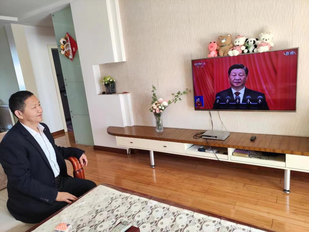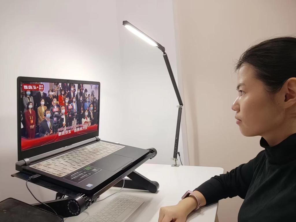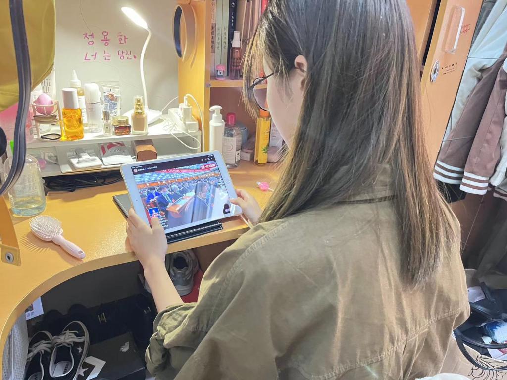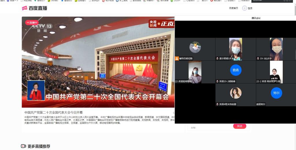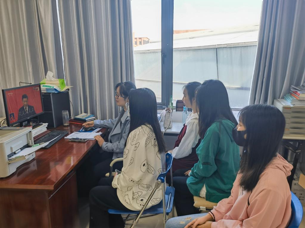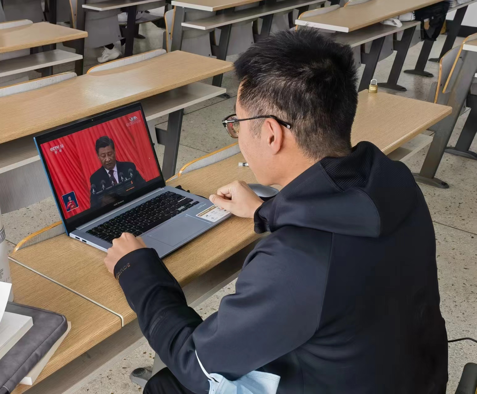 学生在宿舍收看大会直播(图片提供:外国语学院各党支部、各班级)