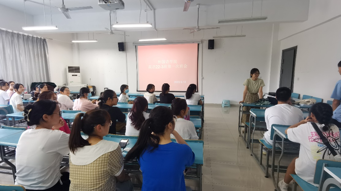 9月13日,外国语学院英语专业和日语专业143名新生分别在各自教室召开了入学首次班会,加强新生班团组织建设,开展校情院情教育、安全教育、校规校纪教育、疫情防控知识教育,对军训、“启航教育”等进行动员安排。