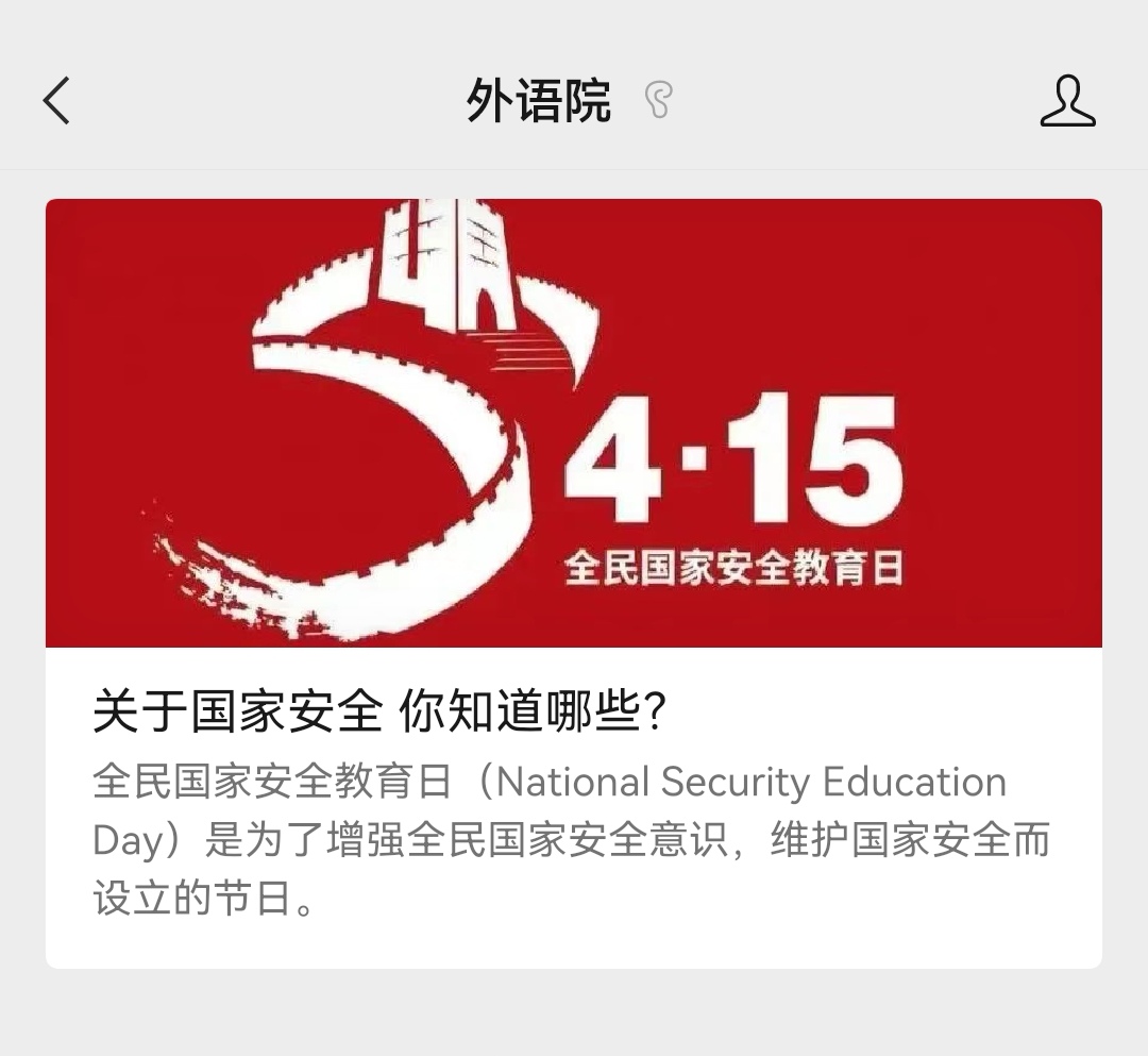 外国语学院微信号发布关于国家安全知识的推文(图片来源:院学生会提供)