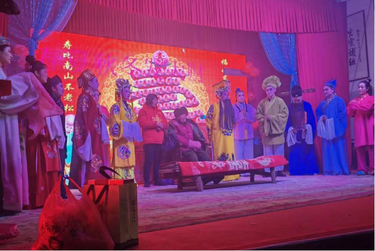 戏剧团在为百岁老人祝寿(供图:张文慧)