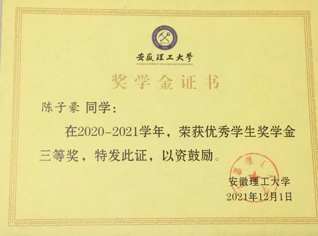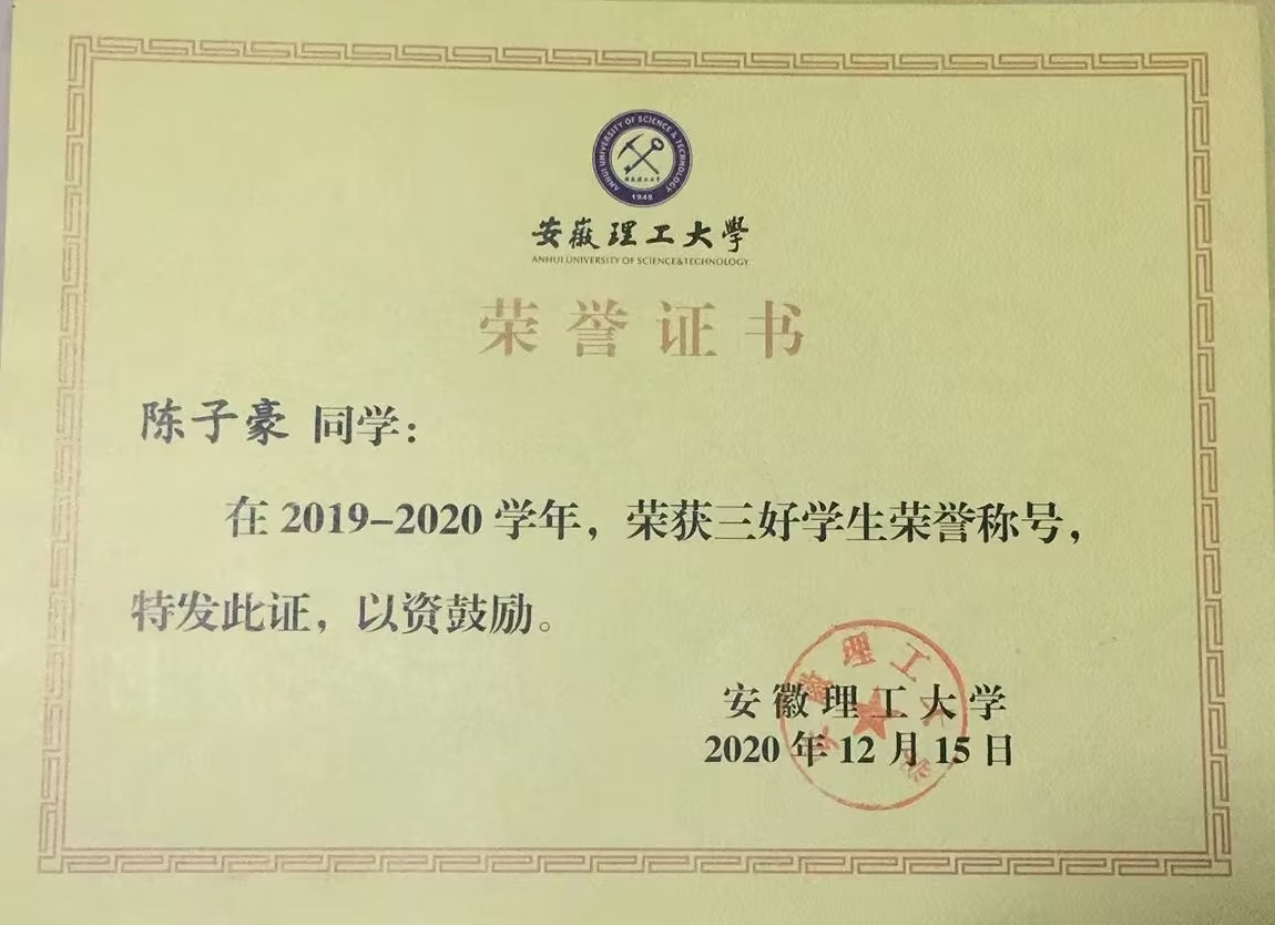 陈子豪部分获奖证书