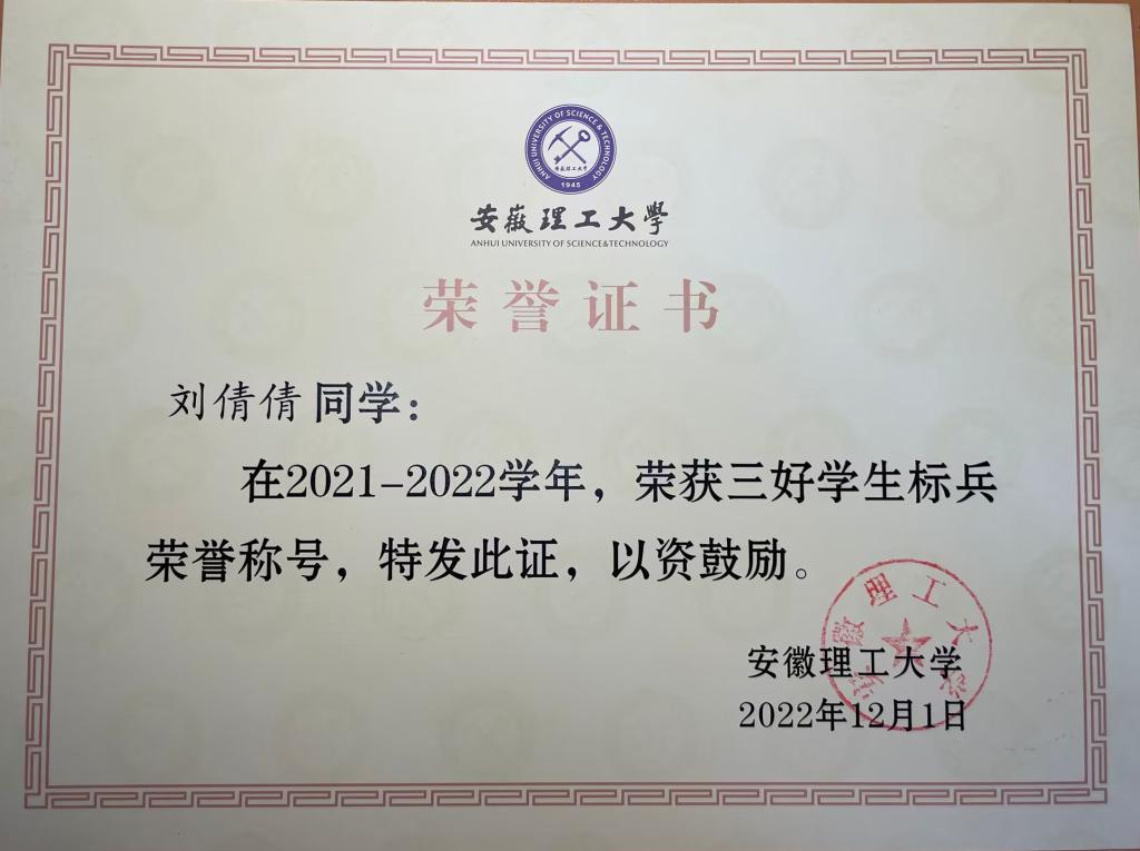 刘倩倩部分获奖证书