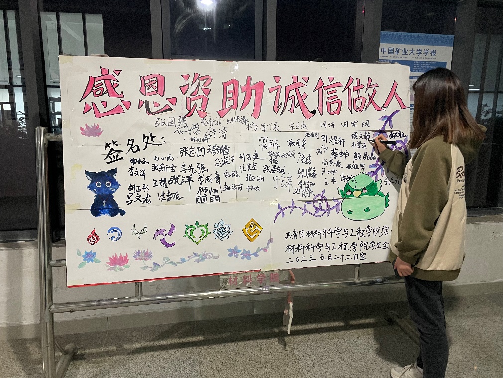 为切实发挥资助育人成效,加强对受资助同学的诚信教育、感恩教育和励志教育,强化责任担当和奉献意识,材料科学与工程学院于五月和六月初依托学院“一站式”学生社区开展了以“感恩资助,诚信做人”为主题的资助诚信教育系列活动,多渠道宣传征信知识,增强同学们的诚信意识,营造“讲诚信、常感恩、报社会”的浓厚氛围。