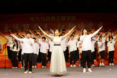 为迎接中国共产党建党102周年纪念日,教育引导学生赓续红色血脉,厚植爱国情怀,6月18日,电气与信息工程学院在钻石剧场举办“永远跟党走,红歌颂党恩”红歌合唱比赛,用歌声抒发对党的美好祝福、对伟大祖国的深切热爱。学院党委书记徐关怀,学工负责同志,全体辅导员,20支班级合唱团参加活动。