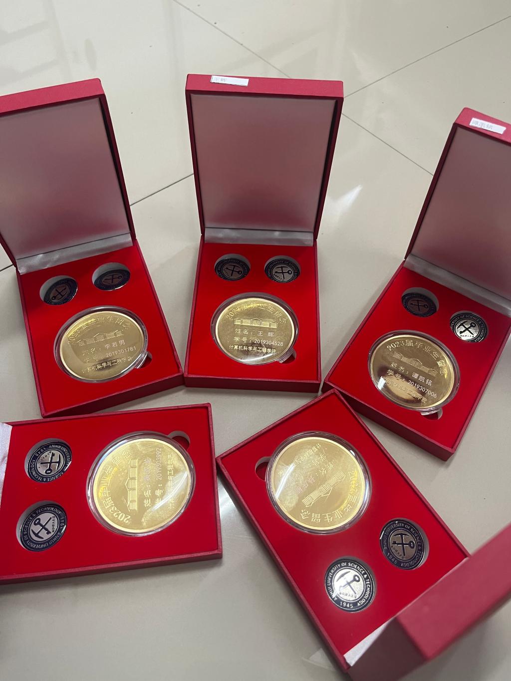 每逢毕业季,学院都会精心为每一位毕业生定制属于他们自己独一无二的纪念品,让他们在毕业季心更暖,情更深。专属纪念币正面雕刻了学校红楼的形象,背面刻下了每一位毕业生的学号和姓名,承载了母校对每一名毕业生的深厚情谊,同时也凝聚了毕业生四年美好的回忆。另外,学院还为每名毕业生定制了两枚安理校徽,希望毕业生怀揣安理精神,逐梦未来,梦想起航。学院院长方贤进一一为学院毕业生扶正流苏,毕业生纷纷与老师合影留念,共话离别情。毕业生计算机19-5班孙逊说道:“学院定制的毕业生专属纪念品很精致,整个毕业季的各类离校活动安排都很暖心,感谢学校四年的培养,我们会谨记母校的教导,在各自的岗位上贡献安理力量。”