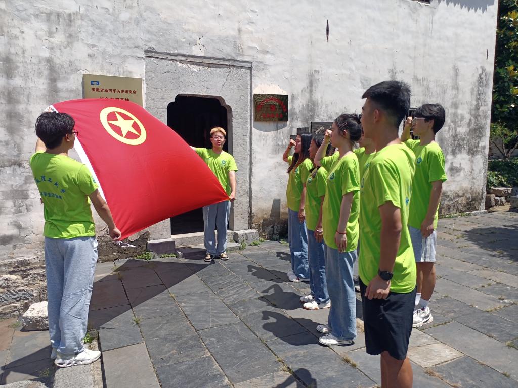 探寻红色遗址,重温党团誓词。实践团一行参观了龙潭肖古村落,在古村落里瞻仰了新四军五团的遗址,认真研读了真实史料和珍贵图片,对于那段可歌可泣的历史和今天幸福生活的来之不易又有了更深的体会,实践团成员在此又重新接收了一次爱国主义教育。在遗址之前,实践团的所有共青团员重温了入团誓词,正式党员和预备党员们重温了入党誓词。