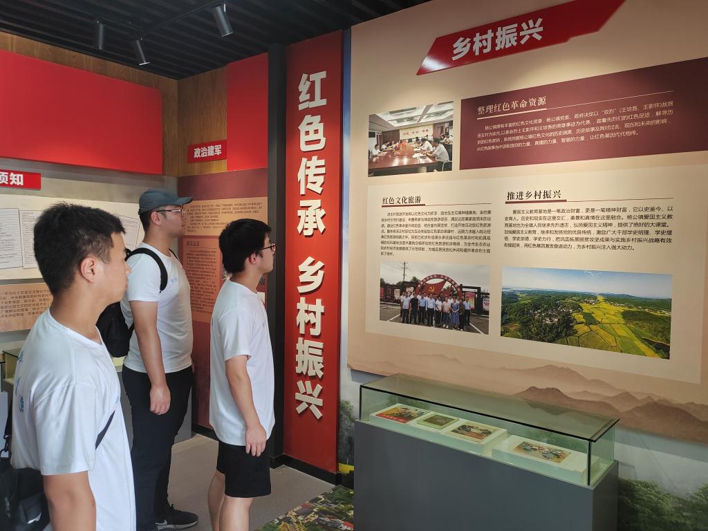 寻红色印记,缅怀革命先烈。在杨公镇汤王村工作人员的带领下,实践团师生先后瞻仰了王影怀烈士陵园,参观了烈士事迹陈列馆和党的光辉历程展馆,一段段真实史料、一幅幅珍贵图片,诉说着那段可歌可泣的斗争历史,革命先烈们为了民族与国家大义,发出“与其求生而害义,宁抛头颅以殉节”的铮铮誓言,深深震撼了在场的每一位志愿者的心灵。