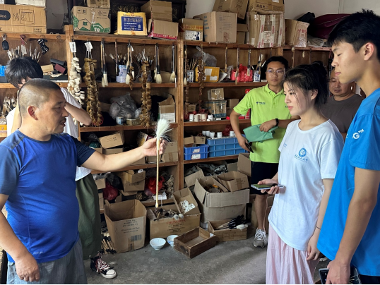 习近平总书记在哲学社会科学工作座谈会上强调,中华文明延续着我们国家和民族的精神血脉,既需要薪火相传、代代守护,也需要与时俱进、推陈出新。为了解目前非遗传承遇到的机遇和挑战,观察团实地拜访非遗传承人,学习宣笔、徽墨等的制作工艺,参观歙砚制作作坊。同学们与非遗传承人徐永龙学习宣笔制作时得知,一只工艺优良的宣笔,要经历从选毫、切割、修削到成品,制作工序复杂,加之当今快节奏生活、工业化快速发展,导致许多年轻人不愿意学习和传承这门手艺,但是在这些非遗传承者身上,队员们感受到了他们对非遗传承的坚守和创新,也明白了自身肩负的保护历史文物、弘扬传统文化的使命。从老先生那里得知,近年来为实现“宣笔梦”,做大做强宣笔产业,泾县政府出台了一系列促进宣纸宣笔产业发展的惠民政策,如开拓线上销售渠道、对非遗制笔产品免税等。