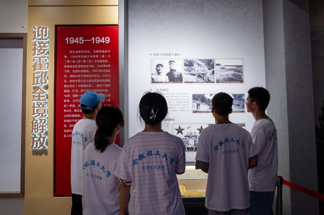感革命先烈之魂,奠红色传递之基。团队首先到达六安市霍邱县烈士陵园了解大别山革命斗争史,学习革命英烈的奋勇精神,激发爱国情怀。走进烈士事迹陈列馆,在一件件历史文物、一段段历史资料中感受刘邓大军千里挺进大别山蕴含的艰苦奋斗和勇于战胜一切困难的革命精神。站在烈士纪念碑前,望向碑上一个个金黄的名字,所有成员不由地肃然起敬。参观过后全体团队成员在纪念碑前深切地缅怀了在民主革命时期牺牲的革命烈士。