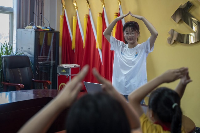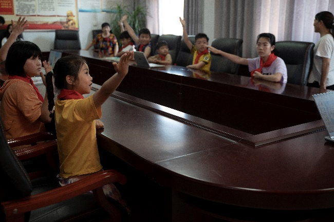 弘扬传统文化,塑造自信儿童。担负起新的文化使命,努力建设中华民族现代文明。为增强留守儿童的文化自信,让中华优秀传统文化更好地得到传承和发扬,实践团队开展了“观文化昌盛,延传承火炬”的传统文化学习活动。活动中,实践团成员带领孩子们背诵《三字经》和观看《三字经》手势舞,这激起了留守儿童学习传统文化的兴趣。在志愿者的带领下,儿童们有耐心地学习每个手语动作,指尖上处处洋溢着幸福。他们于无声处感受传统文化的魅力,在手臂间坚定了为传承中华传统文化贡献力量的信念。
