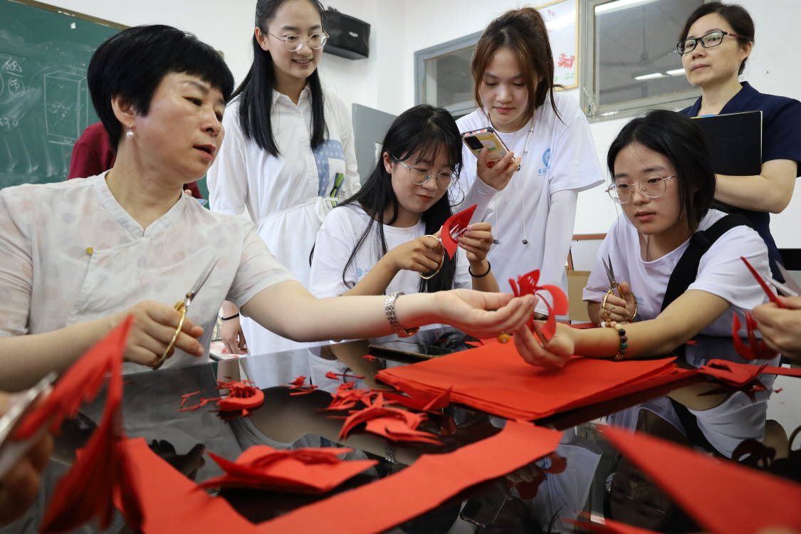 剪纸是一种镂空艺术和最为流行的民间艺术,在视觉上给人以透空的感觉和艺术享受。中国剪纸是中国民间美术形式之一,2006年5月20日,剪纸艺术经国务院批准列入第一批国家级非物质文化遗产名录。2009年9月入选联合国教科文组织“人类非物质文化遗产代表作”名录。2023年7月5日,在安徽省非物质文化遗产教育传习基地(剪纸中心),师生们通过实地参观、聆听讲解和动手制作三个环节的学习,对剪纸这项非物质文化遗产有了更深刻的了解。通过中华剪纸艺术委员会副主任、安徽省工艺美术大师、安徽省优秀教师、安徽省课程思政教学名师周鸣的讲解介绍和现场授课,一件件剪纸作品犹如一个个引人入胜的德育小故事慢慢浸润到大家的心中,那些活灵活现的剪纸艺术品,让大家深刻地感受到中华优秀传统文化的博大精深和这次“强国有我,青年有为”的实践主题,增强了保护、传承、创新、发展中华传统文化的责任感。