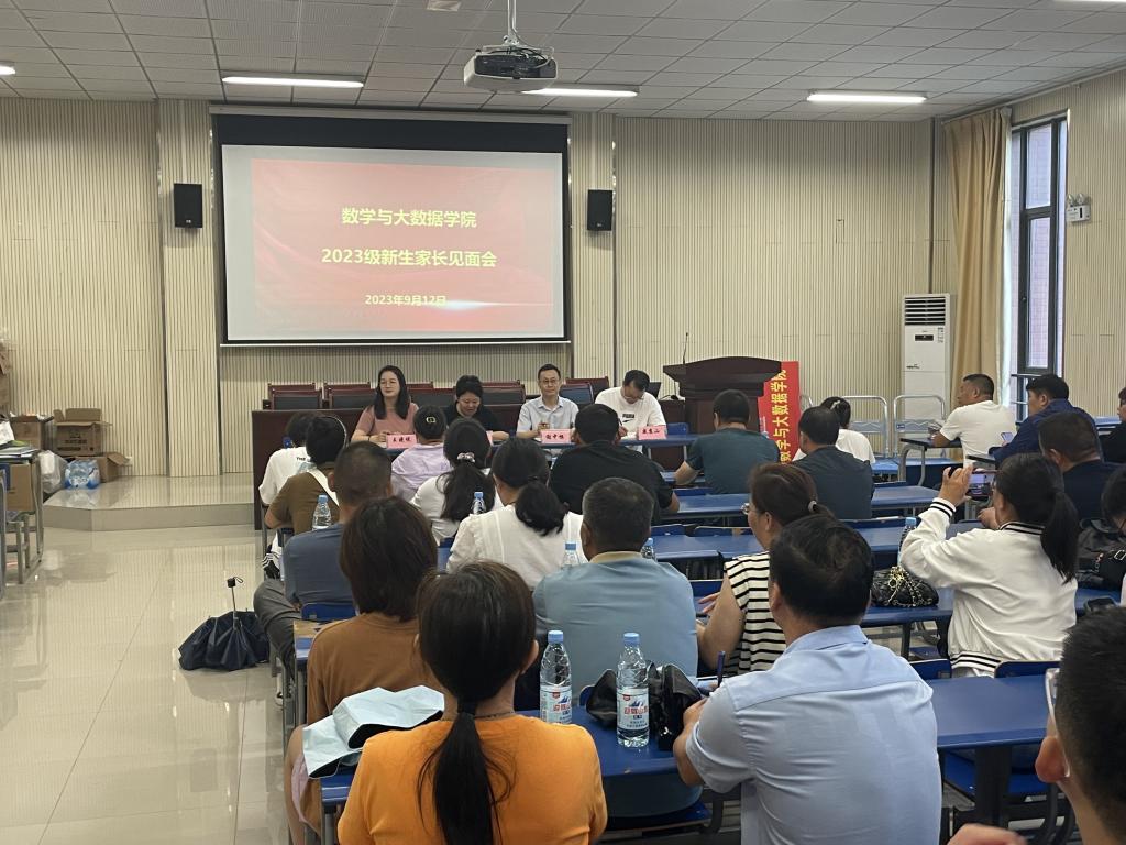 为了加强家校之间的沟通,促进学生身心健康成长,营造良好的教育环境,形成家校共建的育人合力,数学与大数据学院于9月12日上午在学院一楼报告厅召开2023级新生家长见面会。学院领导、2023级新生辅导员以及线上与线下的200余名新生家长参加见面会,会议由党委副书记马蓓蕾主持。