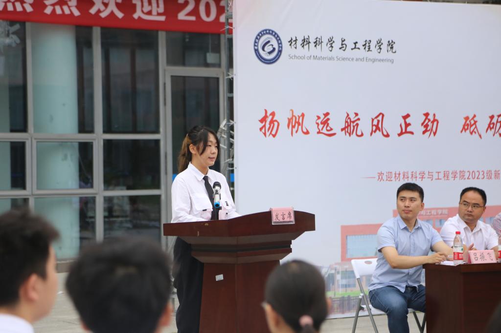 高分子材料与工程2023级学生杨嘉雯作为新生代表发言,她分享了高中时代拼搏的岁月,交流了来安理后的成长点滴。不论是迎新现场还是入学教育,深深感受到教师对学生的关爱、关心和关照。展望未来,她表示做为一名新安理材料人,要快速进入角色,多向师长请教,沉下心来学习,向下扎根,向上生长。