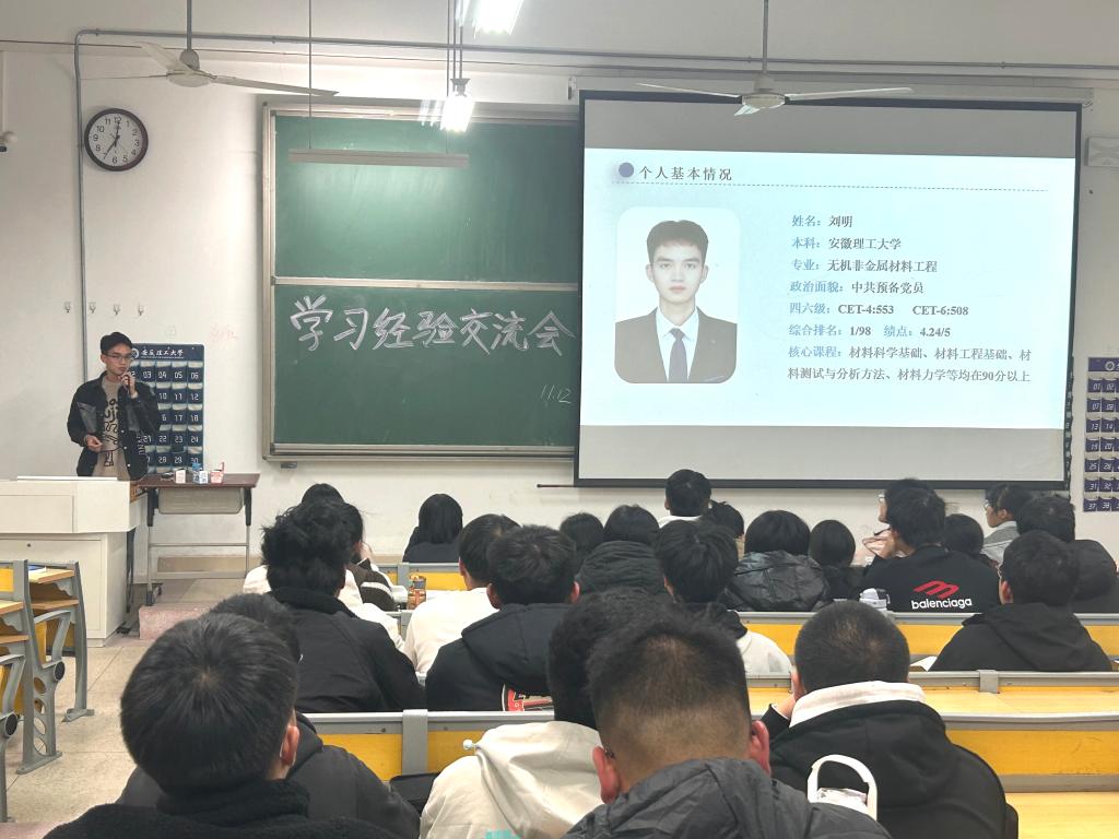 为了帮助2023级新生解决困惑,明确大学目标。11月12日晚上,在天工北102教室,材料科学与工程学院学习经验分享会顺利举办,无机非金属材料工程专业2020级的优秀学长刘明和崔凯应邀分享。
