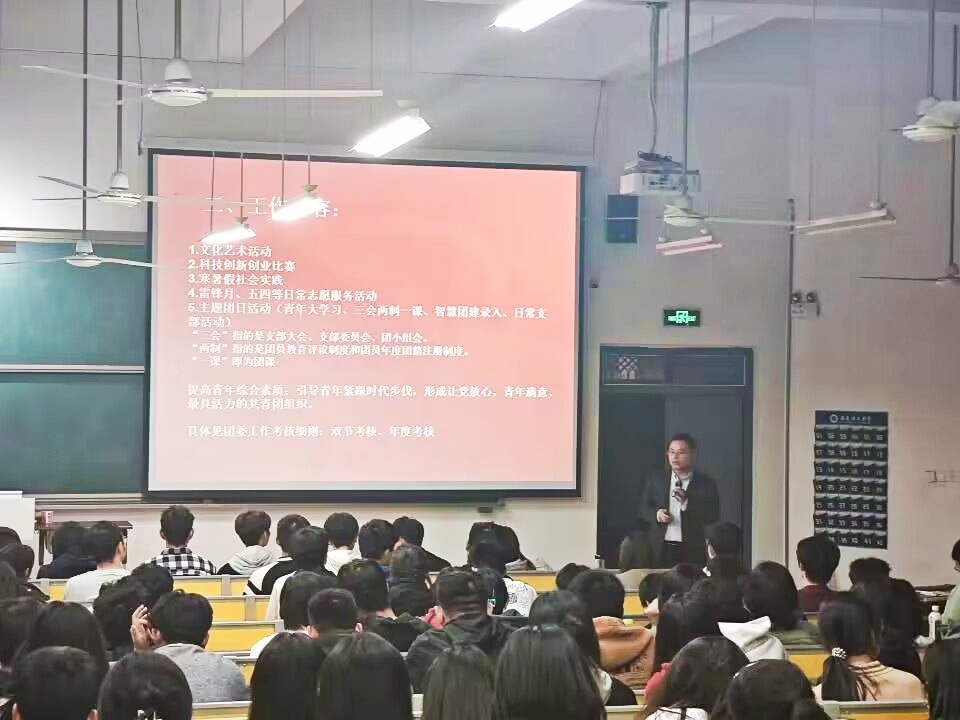 11月9日晚,化工学院学生组织全员大会在明理楼302教室,学院团委书记杨志华、辅导员王文涛、学生组织全体成员参加会议。