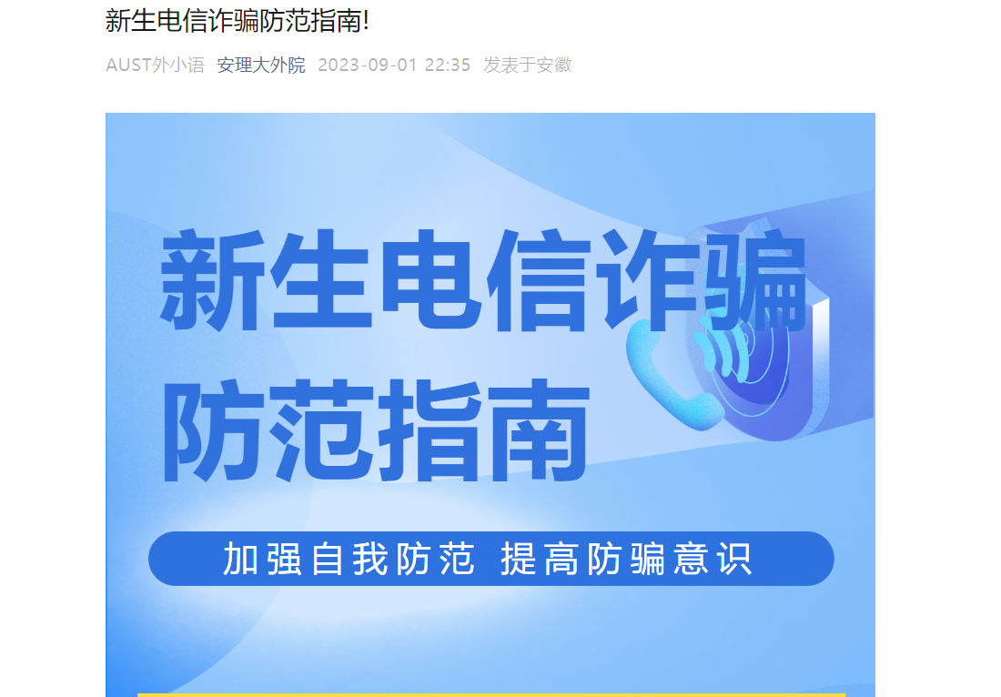 学院微信公众号编发反电诈指南(摄影、图片提供:秦镇)