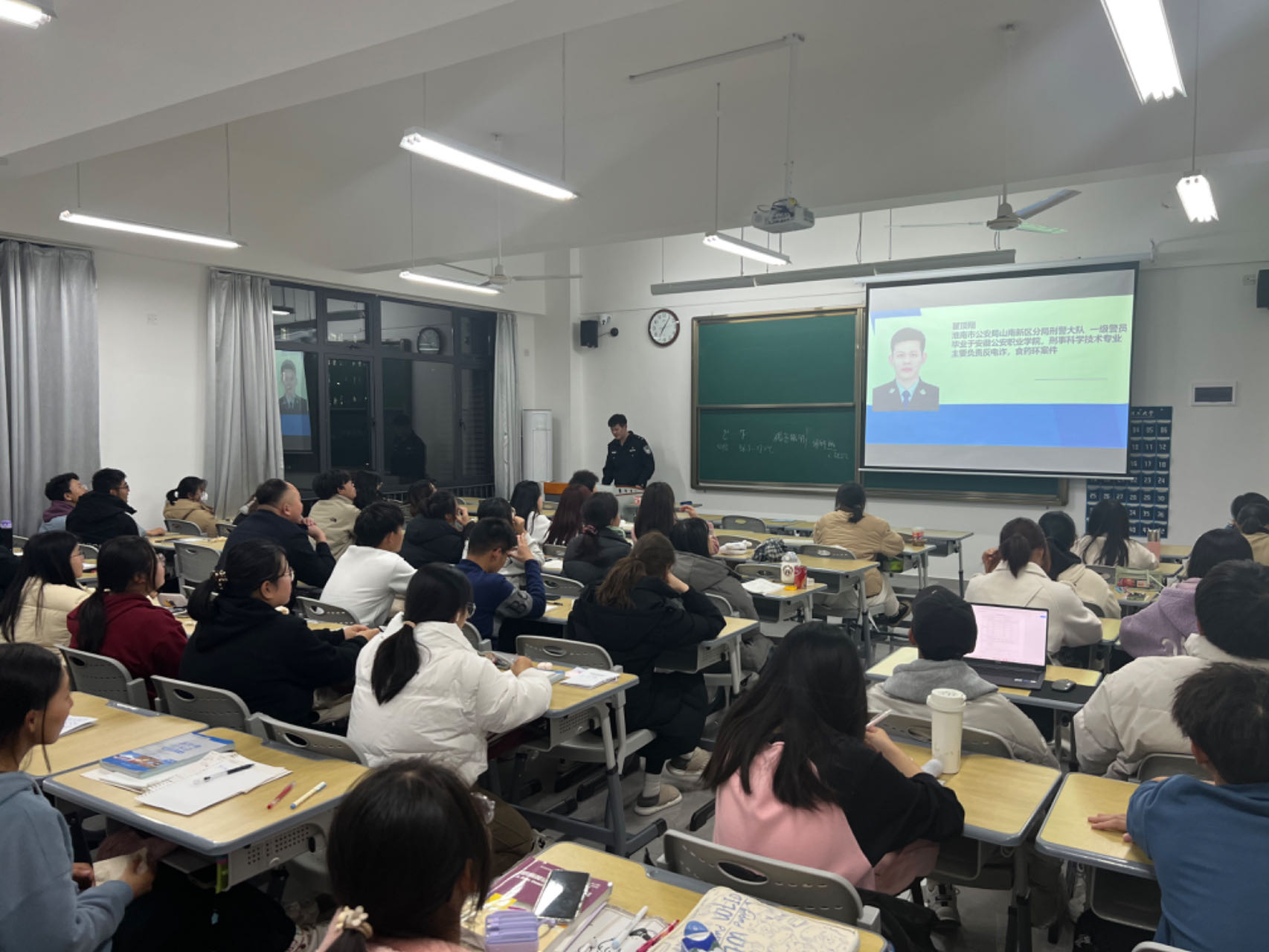 为进一步提高新生防范各类电信诈骗的安全意识,共建平安、和谐的校园环境,11月15日晚,外国语学院联合淮南市公安局山南新区分局刑警大队走进新生晚自习教室以主题班会的形式开展反电信诈骗知识宣传活动。
