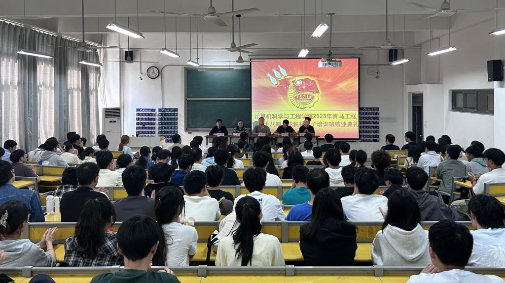 11月3日中午,计算机科学与工程学院2023年“青马工程”暨入党积极分子第十八期培训班全部培训任务圆满完成,在天工南110教室顺利举办结业典礼,计算机科学与工程学院党委副书记刘中廷,部分学生党支部书记以及157名参训学员参加了结业典礼。