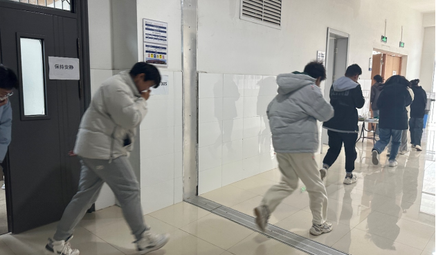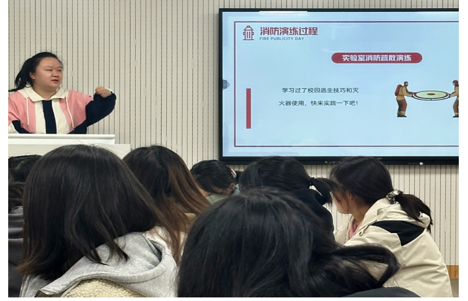 本次消防演练活动分为实验室消防安全知识培训、实验室突发火情逃生疏散演练、灭火器实操体验三个部分。实验室管理员在百川楼外语学习中心智慧教室内对师生“零距离”教学,讲解校园常见火灾诱因、实验室安全管理制度、楼宇应急逃生知识、干粉灭火器的使用方法等知识。在疏散逃生演练中,各岗位责任人迅速到达指定位置,在实验室安全管理员下达火情逃生指令后,各岗位责任人引导师生用湿毛巾捂住口鼻后,有序向室外安全地带快速疏散。在户外空旷地带确认全部安全逃生后,还逐一在进行了干粉灭火器灭火的使用操作体验。