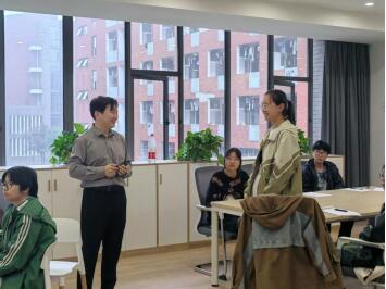 环节二是由常风姣老师主讲的互动游戏内容,通过即兴表达的方式锻炼同学们的表达思维和勇气,缓解同学们在表达过程中的焦虑。游戏一看图说话,目的是帮助同学们消除表达负担。游戏二找出重点,让同学们以图画中的某一细节展开想象并进行细节化描述,目的是使同学们的表达有目的性。游戏三向某人推荐某物,目的是使表达具有专业性,实现共情表达。同学们的发言与互动使本次训练营变得活跃。