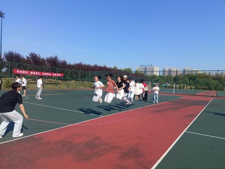 运动会包括集体跳绳、拔河等项目。赛场上,选手们精神饱满、斗志昂扬。集体跳绳比赛中,队员们配合默契,绳子在空中快速飞舞,尽显青春活力;拔河比赛紧张激烈,双方队员齐心协力,奋勇拼搏。