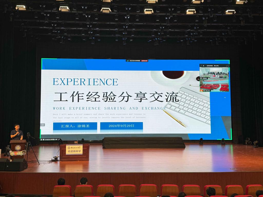 梦想跨越万里,知识绘就青春异彩。在下半场的报告会中,学院通过线上方式与身处非洲中国援建纳米比亚首都新机场公路项目的江西中煤路桥工程有限公司董事长、地环学院2006级资源环境与城乡规划管理专业校友涂锦胜进行连线。涂锦胜表示,无论身处何地,只要保持对知识的渴望和对梦想的追求,就一定能够创造出属于自己的精彩人生。他的分享不仅让大一新生们感受到了专业知识的魅力、“一带一路”建设对非洲国家发展的意义,更激发了他们勇于探索未知、敢于挑战自我的信心和勇气。陈楠通过同校友的连线勉励新生以梦为马,逐梦青春,立志民族复兴,不负韶华,不负时代,在青春的赛道上奋力奔跑,让人生在实现中国梦的奋进中收获无限精彩。