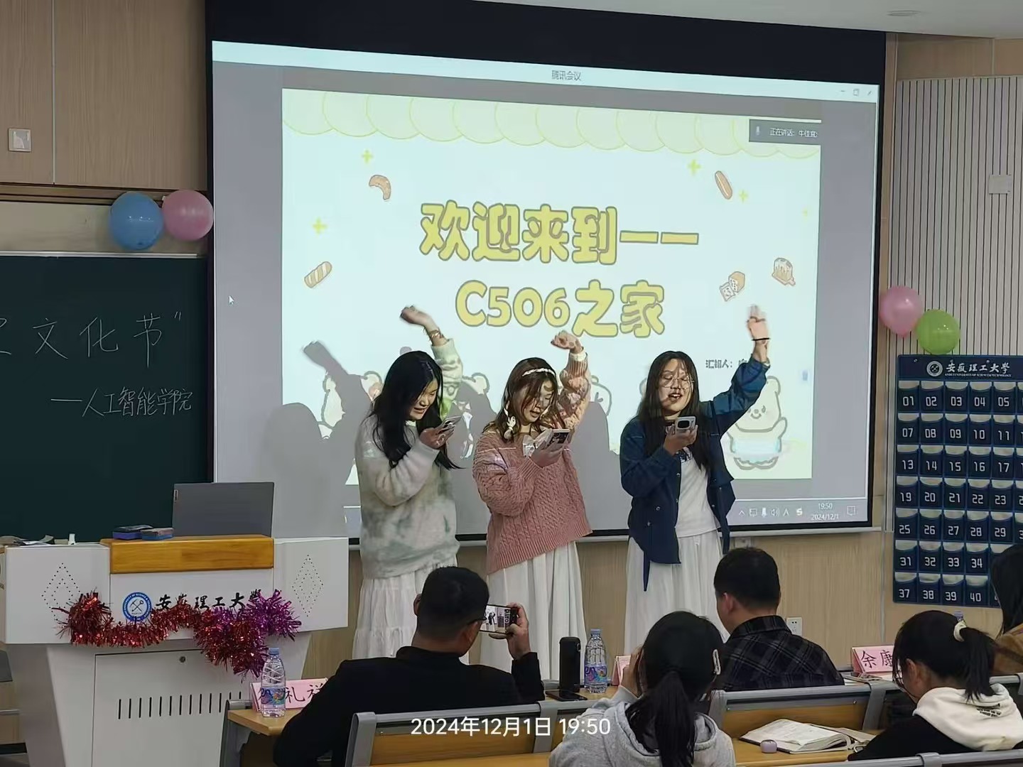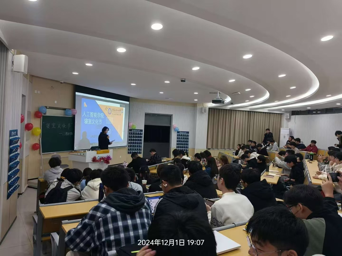 为深入推进宿舍文化建设,培育同学们的良好生活习惯,营造一个温馨、和谐、充满活力的宿舍环境,人工智能学院团委联合“一站式”学生社区于12月1日在耕心楼314教室成功举办“AI Home”新生寝室文化节活动,共有来自17个寝室,70余人参与此次活动。