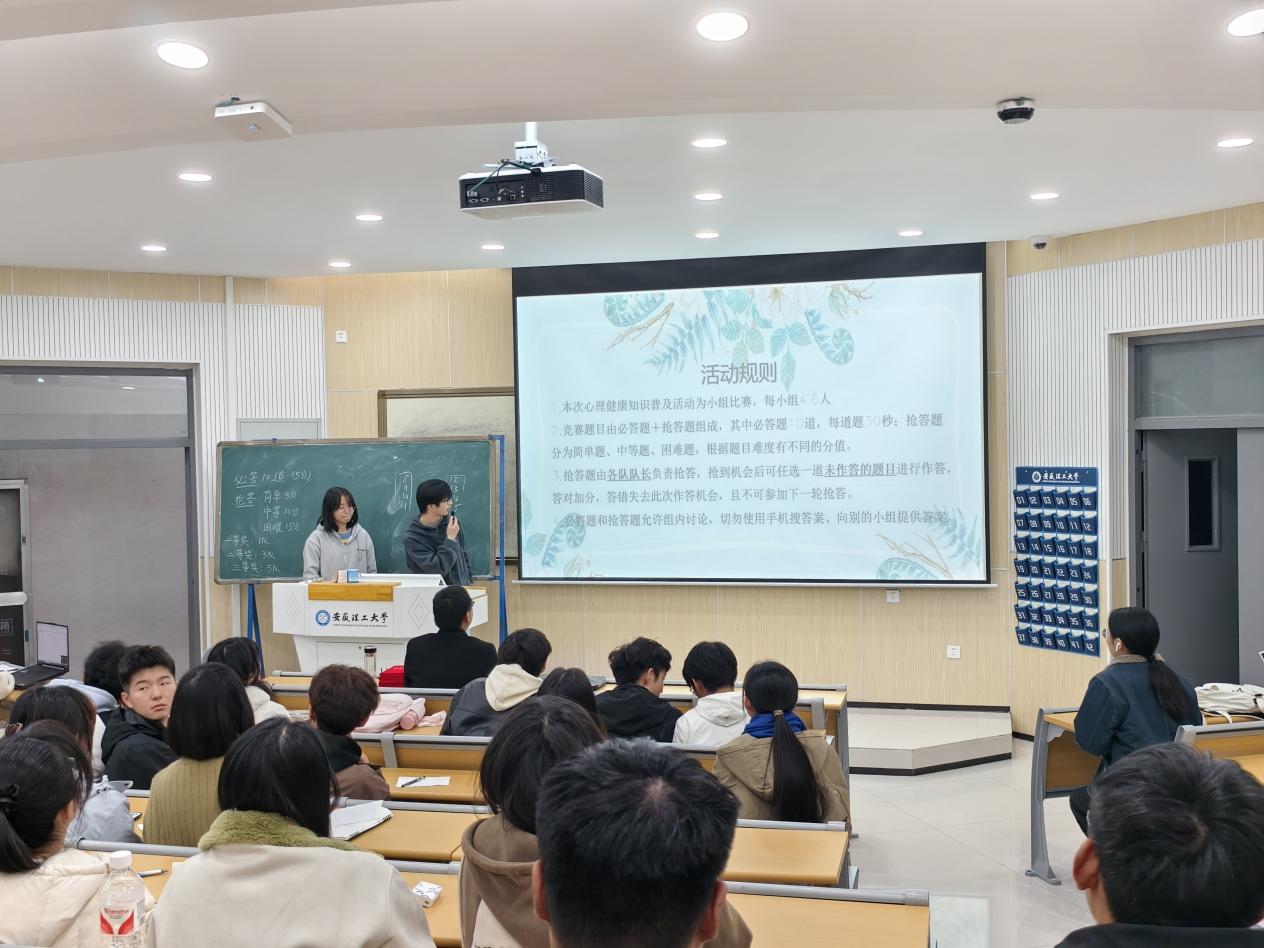 为了引导学生主动关注心理健康知识,提升心理健康保护意识,在全院学生中营造积极健康的心理交流环境,促进学生相互理解、友爱互助,人工智能学院于11月26日晚七点在耕心楼111教室举办了“心理健康知识普及大赛”。此次大赛共吸引近80名同学报名参加,他们根据自愿组队原则分成15队展开公平竞技。