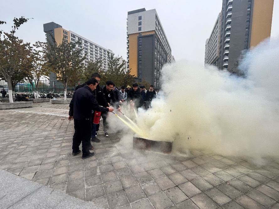 在安全集合点,彭广峰老师为全体参与人员开展了消防安全培训。他通过生动的案例分析,讲解了火灾的危害、预防措施以及火灾发生时的应急处置方法。培训中,老师特别强调了火灾初期的扑救技巧和逃生时的自我保护。在理论培训的基础上,部分学生代表参与了灭火实战演练。在彭广峰老师的指导下,学生们学习了灭火器的正确使用方法,并亲自体验了使用灭火器扑灭初起火灾的过程。