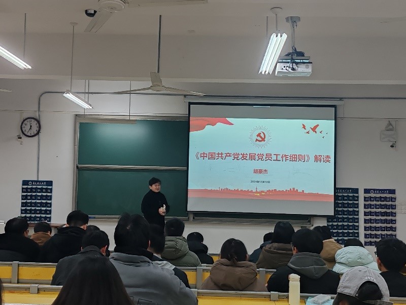 为深入贯彻落实发展党员工作的“十六字”方针,引导新一批入党积极分子保持自身的先进性,端正学生入党动机,加深对党的认识,发挥模范带头作用,12月10日,空间信息与测绘工程学院在明理北212教室党课辅导,胡豪杰老师围绕《中国共产党发展党员工作细则》进行详细解读,80余名入党积极分子参与此次辅导。