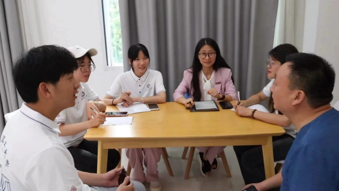 团队成员与王新华交谈现场(摄影:华叶枫)
