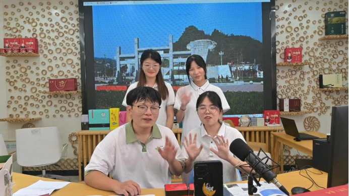 团队成员还在直播间开展直播带货,在镜头前畅聊金寨红色文化故事,推荐金寨特色农产品,亲身体验数字营销助力农产品销售。