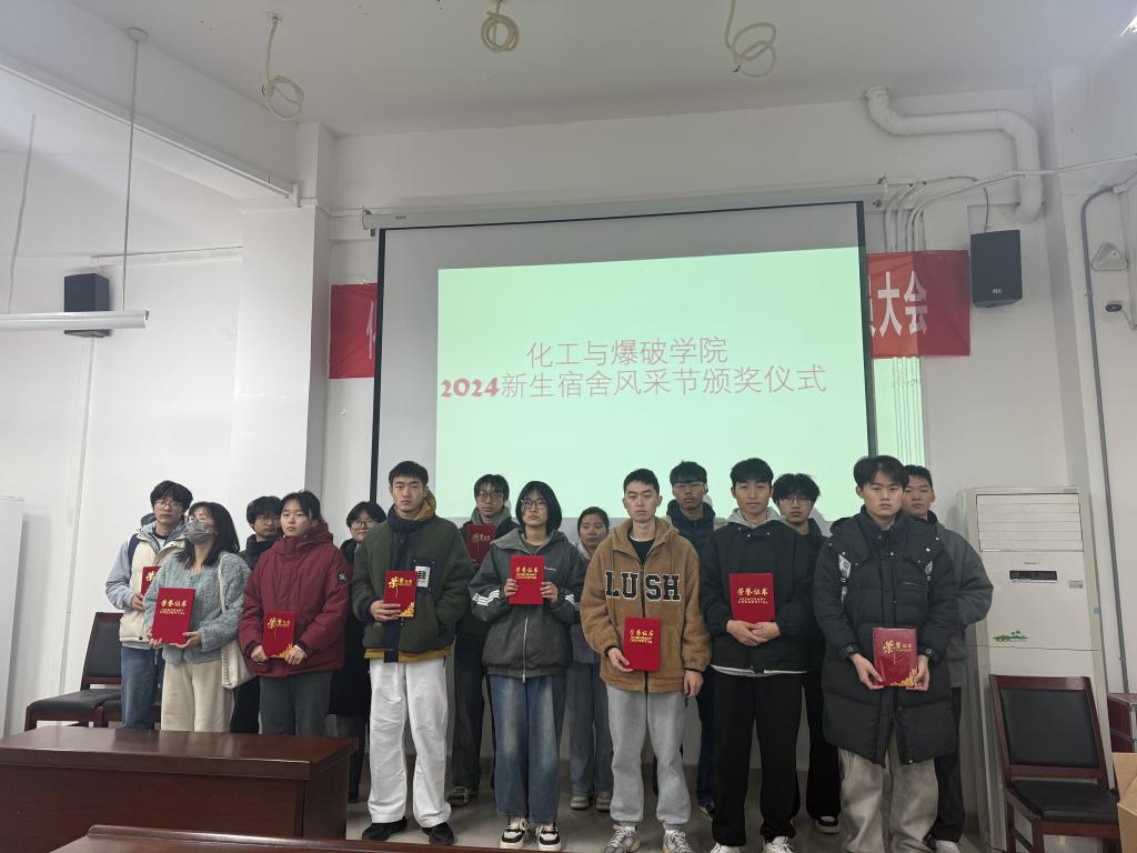 为丰富校园文化生活,营造积极向上、和谐温馨的宿舍氛围,增强同学们的凝聚力和归属感,12月12日,化工与爆破学院在“一站式”学生社区开展2024年新生宿舍风采节颁奖仪式。