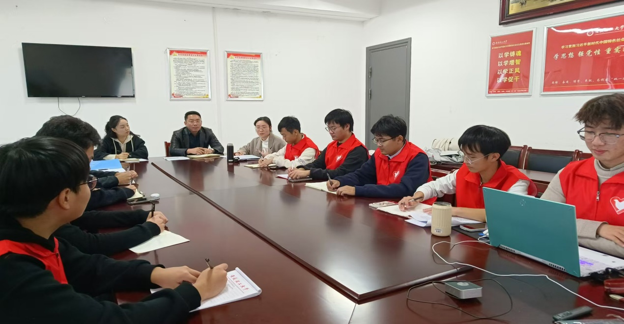 传承红色基因,讲好遵义故事,11月28日,2024年全国大学生遵义会议精神志愿宣讲团-机电工程学院遵“忆”奋进青年志愿宣讲团在励学楼A402开展专题研讨活动。学院党委副书记唐克、团委书记张晶、指导老师姚琦琦与全体实践队员围坐一起,交流学习思考,研讨实施方案。