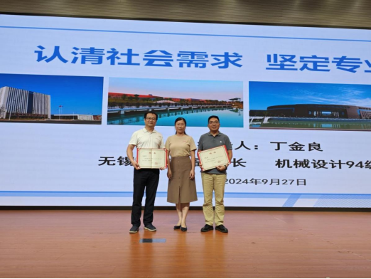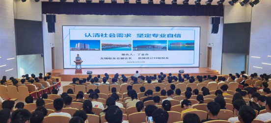 9月27日,机电工程学院在舜耕会堂举办新生启航教育活动。应学院邀请,无锡校友会副会长、机械设计94级校友丁金良,无锡校友会秘书长、机制92级校友朱敬军返校为2024级本科生做题为《认清社会需求 坚定专业自信》励志报告。学院党委书记张岚、新生辅导员、2024级学院新生代表参会,报告会由学院党委副书记唐克主持。
