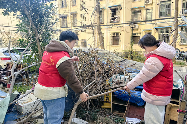 肖义杨同学参加社区卫生清扫活动(左一)