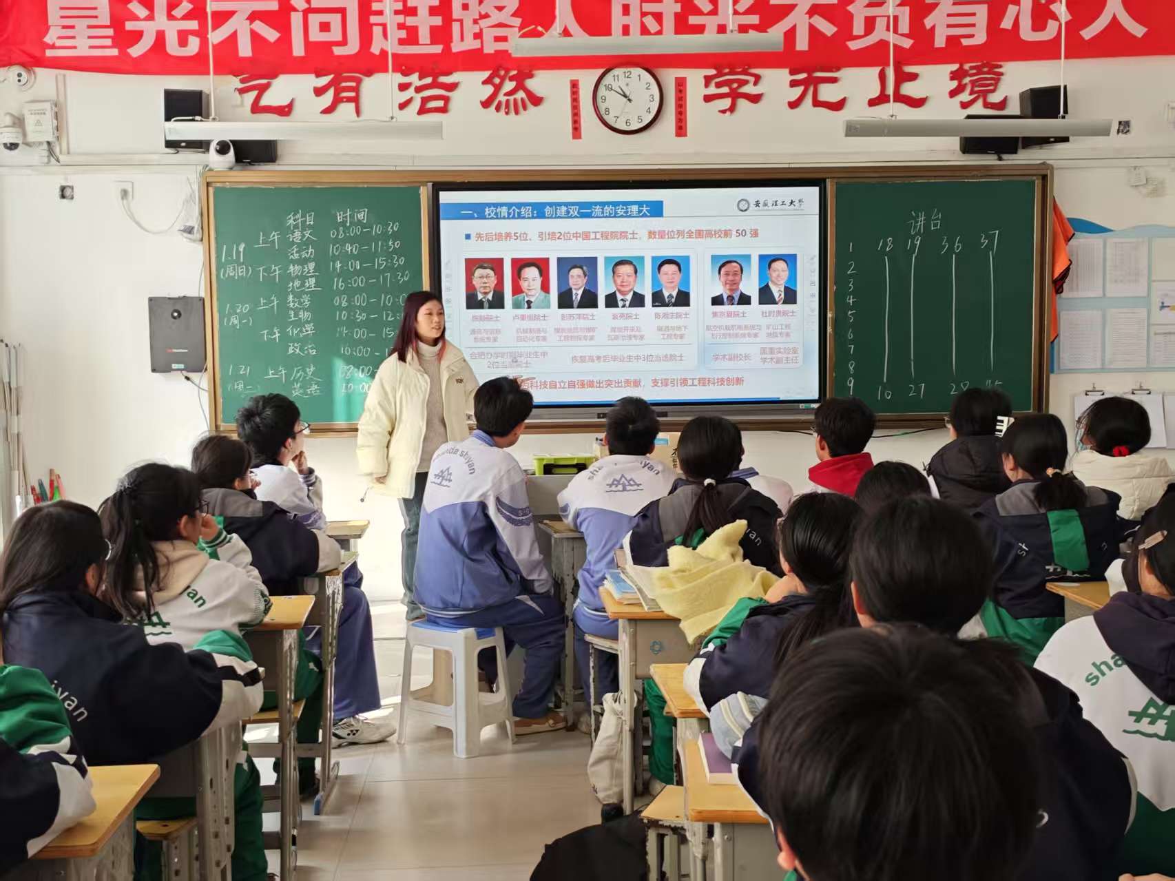学院动员弹药24-2班昝赟、弹药24-8班金野、制药24-1班王如凡等10余名同学,利用寒假回访高中母校,开展招生宣传活动。宣讲过程中,同学们向高中的学弟学妹们详细地介绍学校发展、专业特色、校园文化等,分享了自己大学的生活经验和学习心得,鼓励学弟学妹们努力学习,勇敢追梦,极大地提升了学校在高中学子心目中的影响力和美誉度。昝赟说:“作为一名大一学生,很高兴这次能以校友的身份重回高中母校为我的大学进行宣传,为此我做了vlog宣传片给大家展示校园风采,安理的校园很美,希望能吸引更多的学弟学妹们能选择安理,我们一起在安理筑梦、启航”
